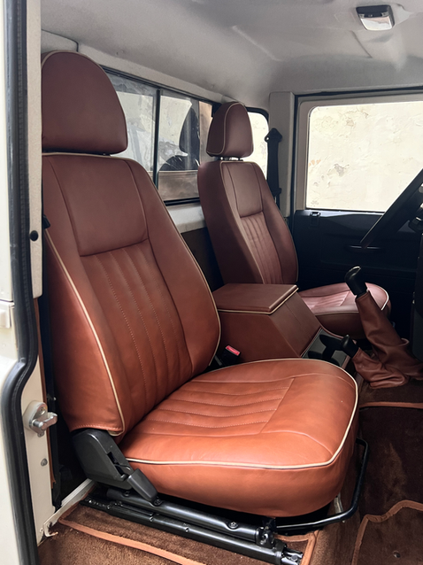 Rifacimento completo di sedili, pannelli porta, cieli, tappeti e plance nel rispetto delle specifiche originali.